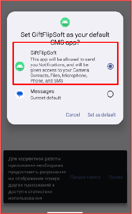 To do this, it asks for very powerful permissions. It tries to make itself the default SMS app, so it can read and send text messages, including one-time passwords (OTPs) from banks. It also asks for the ability to draw over other apps, which lets it place a fake login screen on top of a real banking app. When the victim enters their card number, PIN, or password, the fake screen captures it.