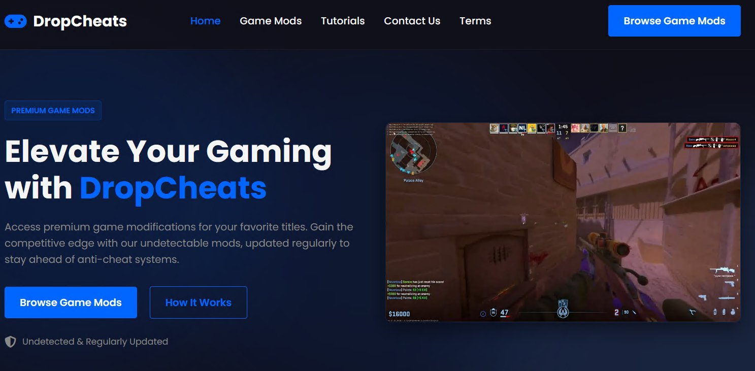 ) mimicked a legitimate cheat/modding portal, offering “premium game mods” that promised undetectable hacks and regular updates to bypass anti-cheat systems.