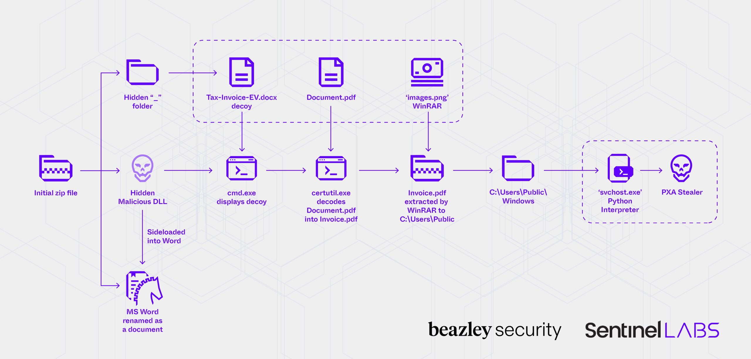 PXA Stealer is a Python-based infostealer linked to Vietnamese-speaking cybercriminal groups. Active since late 2024, the campaign has evolved into a multi-stage infection chain that hides behind legitimate signed apps and decoy documents. By abusing trusted binaries like Haihaisoft PDF Reader and Microsoft Word 2013, attackers sideload malicious DLLs that drop the final Python payload.
